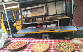 Conoce nuestro servicio FOOD TRUCK (PIZZERIAS MOVILES), donde horneamos las pizzas al momento, con variedad de ingredientes y al gusto de los comensales, acompañadas con pastas y ensaladas.